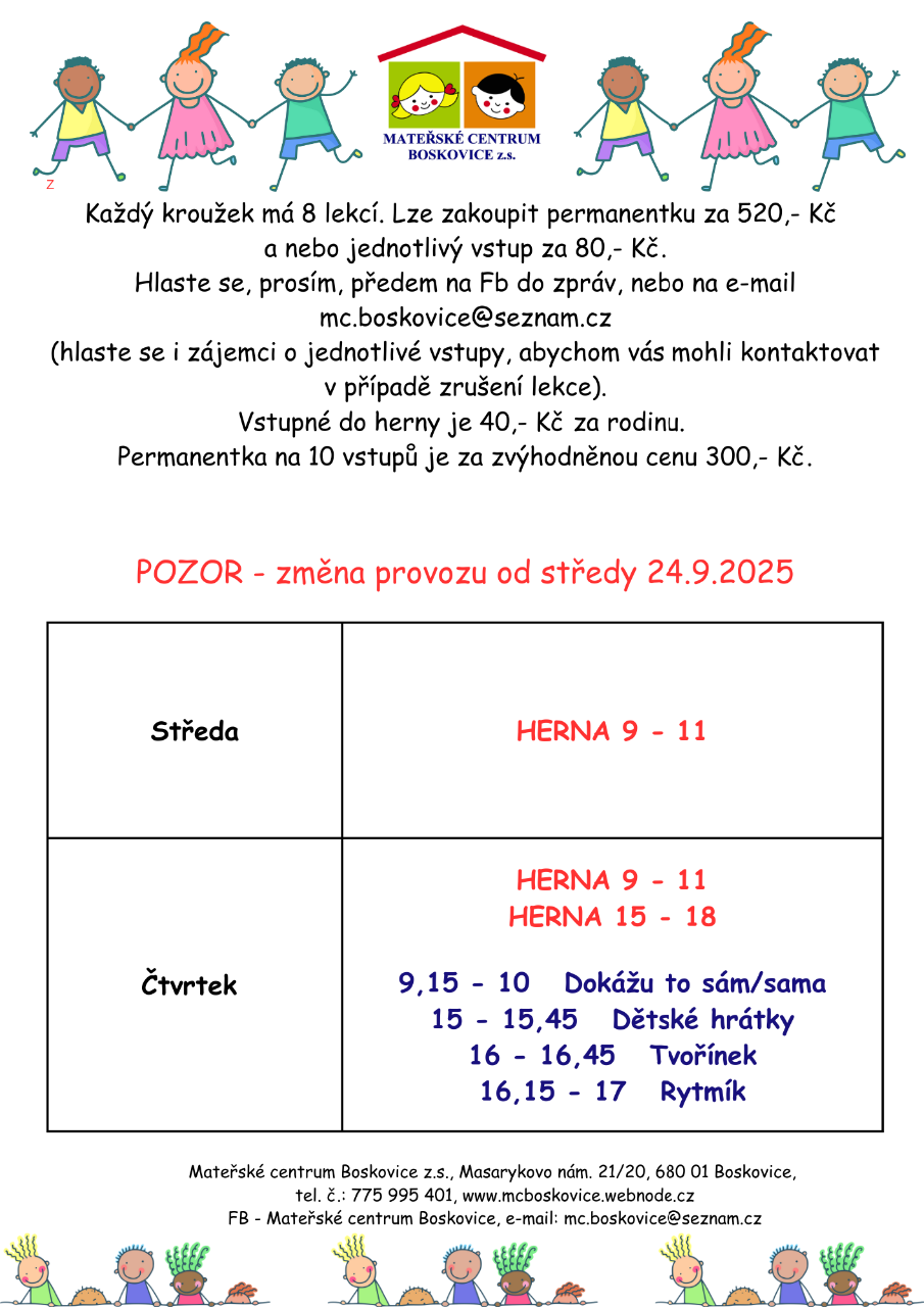 tel. č.: 775 995 401, e-mail: mc.boskovice@seznam.cz